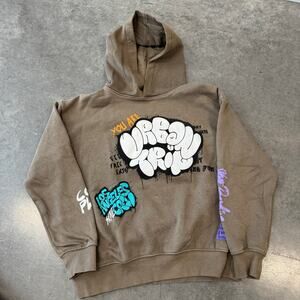 Vintage Y2K Urban Trip Graffiti Denim & Flower Tan Oversize Grunge Youth 11/12