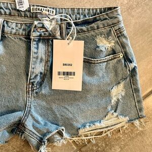 NWT. Murphy mid-rise distressed denim shorts, medium-light in color. 3in inseam. Spare button included