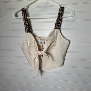 J.O.A. Crop Top Womens XS Ivory Front Tie Sleeveless Festival Animal Print Boho