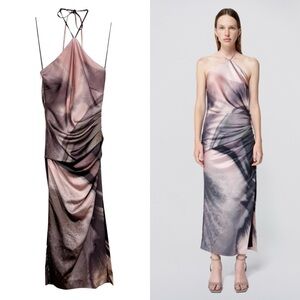 NWT Jonathan Simkhai Hansel Gown Pink Satin Marble Wedding Guest Cocktail Size 0