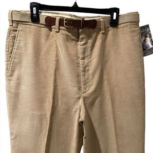 No Iron corduroys. Tan belted Khaki, Pleated Front, Corduroy Pants