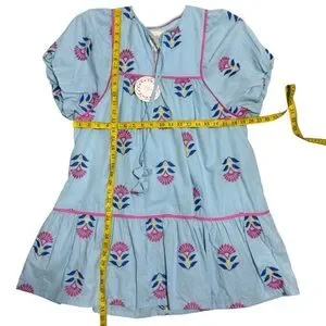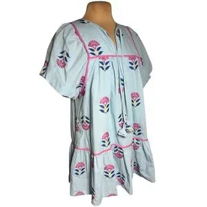Umgee Retro Mod Blue Floral Embroidered Babydoll Dress Size Small