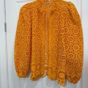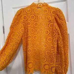 Stella Nova Crochet Top with Puff Sleeves in Orange sz S