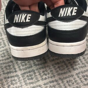 Classic Nike sneakers with a bold black and white look. Perfect for everyday wear. Comfortable and stylish. Size 8:5. Overall very good used condition with wear, as shown, on inner corners.