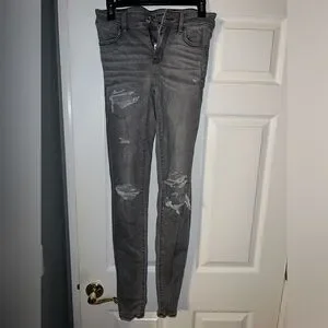 American Eagle Outfitters Gray Distressed Skinny Jeans- Strecth