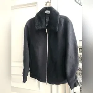 Thoery Mens Black Wool Bomber With Shearling Collar