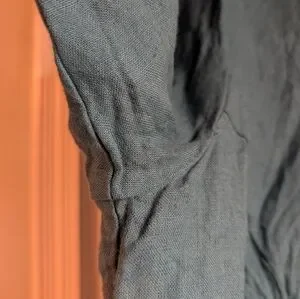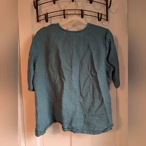 NPL linen top, coconut shell buttons, modified to remove a little volume from the shoulders, deep turquoise blue, XXL, excellent condition