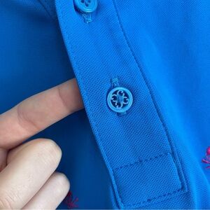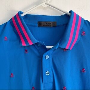 G/FORE Embroidered Piqué Golf Polo Shirt Blue Neon Pink Skull Striped Collar L