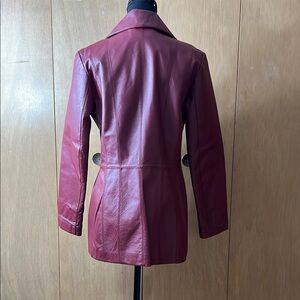 Red 100% Leather Blazer with Notched Lapels and Fitted Silhouette