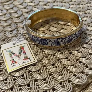 Blue and Gold Floral Bracelet on Gold by Mia Charro NWT so beautiful!