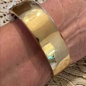 This stunning bracelet by features a delicate blue floral pattern on a luxurious gold base. Perfect for adding elegance to any ensemble.