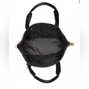 🩷🩷Impress with this stylish Victoria's Secret Weekender bag in classic pink and white stripes, enhanced with elegant black finishes and gold zippers. Perfect for weekend getaways, gym or day trips.