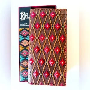 Red Dirt Hat Co Men's Multicolor Genuine Leather Slim Rodeo Bifold Wallet NIB