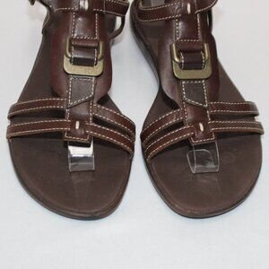 Leather uppers on these size 9.5M, Pre-owned in good condition.