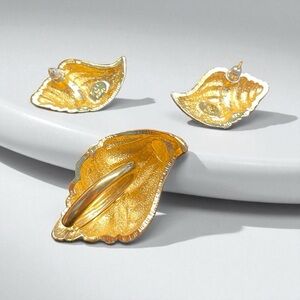 VTG. KJL KENNETH J LANE/AVON SHELL/CONCH EARRINGS,SCARF SLIDE SET W/RHINESTONES