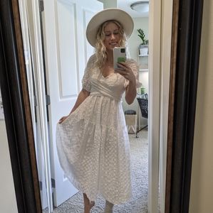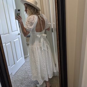 Elegant backless design. Puffy sleeves. Flowy skirt. Perfect for any occasion.