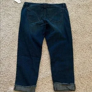 Brand⭐️NEW with Tags⭐️ELLE Chic cropped jeans in dark indigo. Perfect for casual outings🌻Mosaic Garden Collection. Features whiskering, raw hem & modern fit. The pants can be worn rolled up or down—easily adjust to your preferred length!