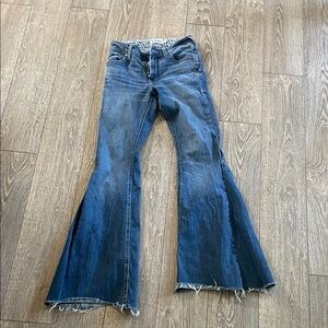Chic flared jeans with a distressed finish. Ideal for a trendy look.