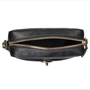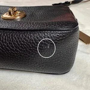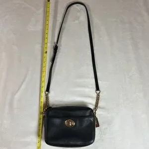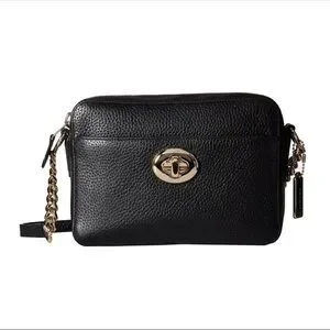 Coach Turn Lock Black Pebbled Leather Crossbody Shoulder Camera Bag