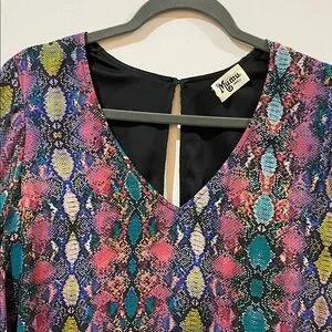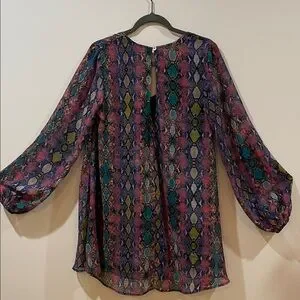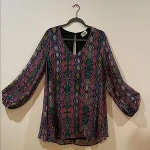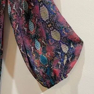 Show Me Your Mumu Boho Colorful Patterned Women's Top Dress Small Sheer Sleeves