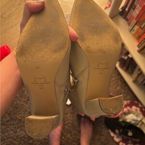 Chic cream heeled boots by Marc Fisher. Sleek design with a pointed toe. Perfect for elevating any outfit. These were only work once - I’m just not a heels person but totally made my outfit when I did wear them. Size 8