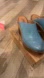 Like new-Chic blue mules with a sturdy wooden platform. Ideal for a bold look. ❤️❤️❤️Great with jeans or a sassy boho skirt! I normally wear between an 8.5-9.0 and these fit me perfectly!!!