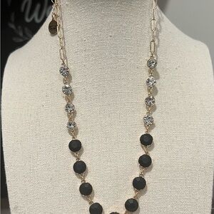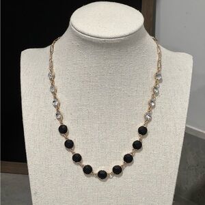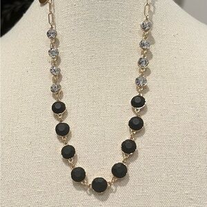 Gold tone necklace with faceted black beads and clear faceted crystals. Necklace measures 16" plus a 3" extender. Really nice necklace. Pictures do not do it justice.