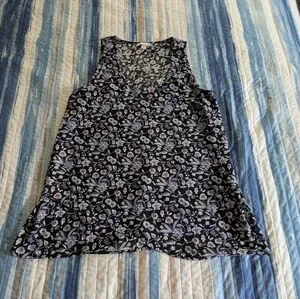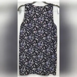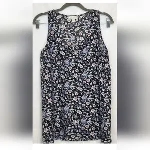 Elegant top with intricate floral design. Features black and blue hues. Very cute and versatile top. Dress up or down. Excellent condition.