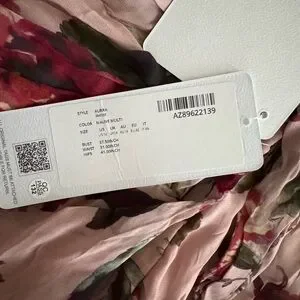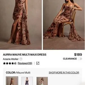 Chic maxi dress with floral design. Features a stylish slit and flowing fabric. Ideal for elegant events.