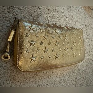 Beautiful Jimmy Choo crackle gold star studded full zip full size wallet