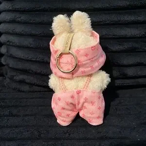 Pink LV Monogram Labubu outfit. LV Monogram on hat upside down. LV emblem on overalls not centered. Included my photos of my Toffee wearing the outfit. Labubu not included.