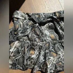 Stylish mini skirt with a bold snake print. Perfect for a trendy look.