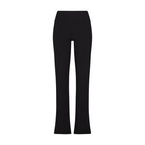 This soft, smooth, and stretchy ribbed pant features a throwback-inspired flare with a foldover waistband.