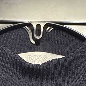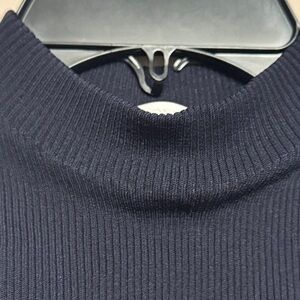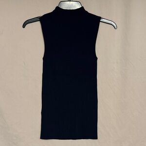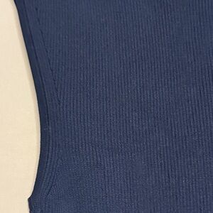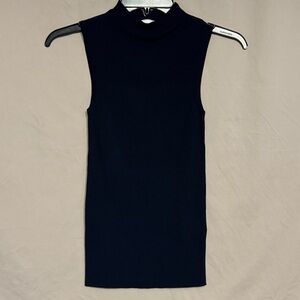 Chic navy blue sleeveless ribbed knit top with mock neck line by Boss. In excellent used condition. Perfect for any occasion.
