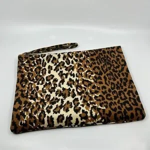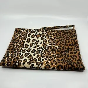 Vtg Huge Leopard Print Velvet Clutch with Wrist Strap