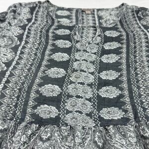 Como Vintage Gray and White floral paisley women’s Blouse Size L