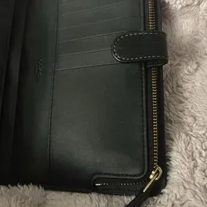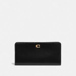 Refined calf leather 15 credit card slots Full-length bill compartments ID window Zip coin pocket Snap closure 7 3/4 (L) x 4 (H) x 1/2 (W) Fits all phone sizes up to an iPhone X and Samsung S7 Edge Style No. CH823