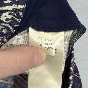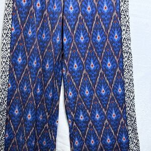 Anthropologie Vale Blue Boho Viscose Wide Leg Pull On Palazzo Pants Women Size M Stretch Waist Ankle Geometric Comfort Casual Artsy Workwear Ikat Blue Motif
