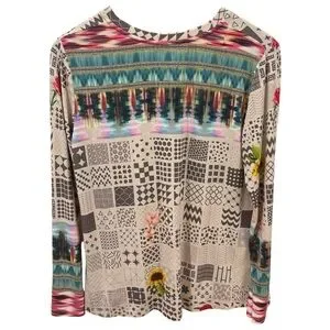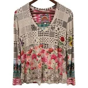 Johnny Was Mystery Print Ladies V-Neck Long Sleeves Boho Sz Small