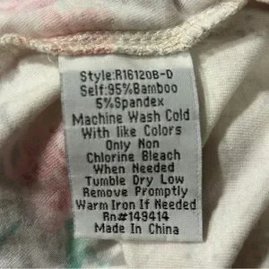 Material: 95% Bamboo, 5% Spandex