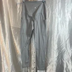 High-waisted gray leggings. Sleek and comfortable design. Perfect for workouts or casual wear.