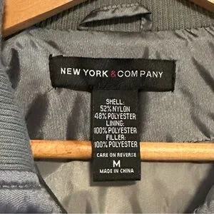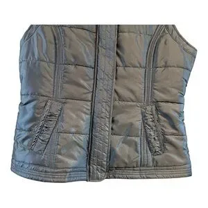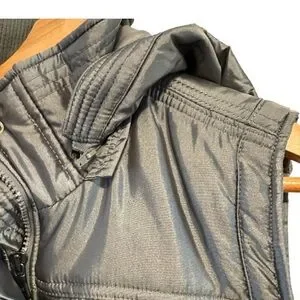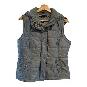 New York & Co Women's Metallic Gray Puffer Vest with Detachable Hood Size Medium