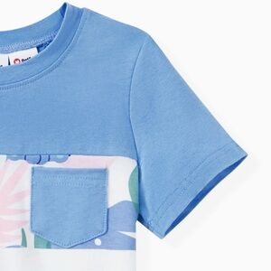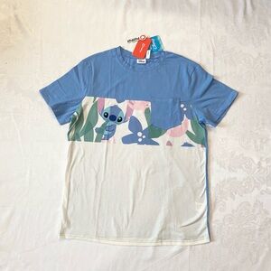 Disney Men Stitch Floral Plant Print Blue and White Men T-Shirts