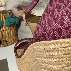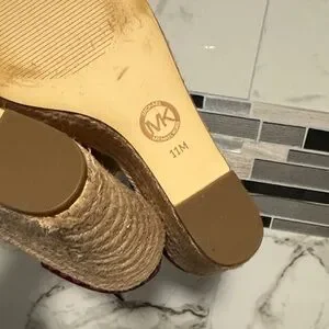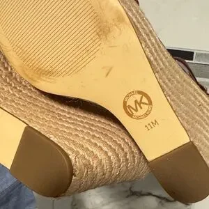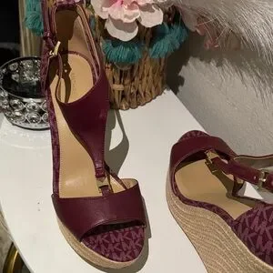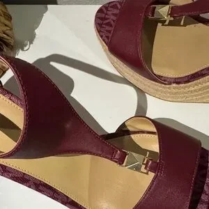 Michael Kors Burgundy and Tan Wedge Sandals