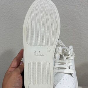 Stylish white sneakers by Boden. Features a sleek design with perforated details. Perfect for casual wear.