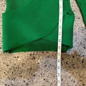 ZARA Green Ribbed Knit Cut-Out Mock Neck Sweater Crop Top Wrap Front Size S