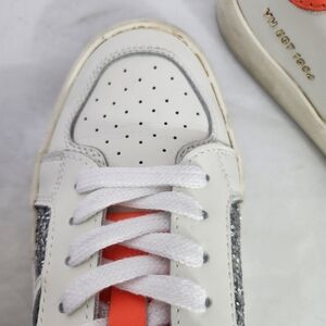 Vintage Havana White Sneakers with Silver and Neon Orange Accents