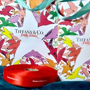 Tiffany & Co. x Andy Warhol 2 Gift Bag sz XL & M and HUGE Ribbon Roll BUNDLE