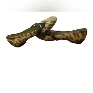 Features: Mary Jane style, single strap with button closure, rounded toe, leopard print