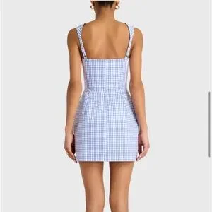 Step out in style with this chic blue gingham dress. Perfect for any occasion, this dress offers a flattering fit and timeless design. Built in shorts underneath sold out online